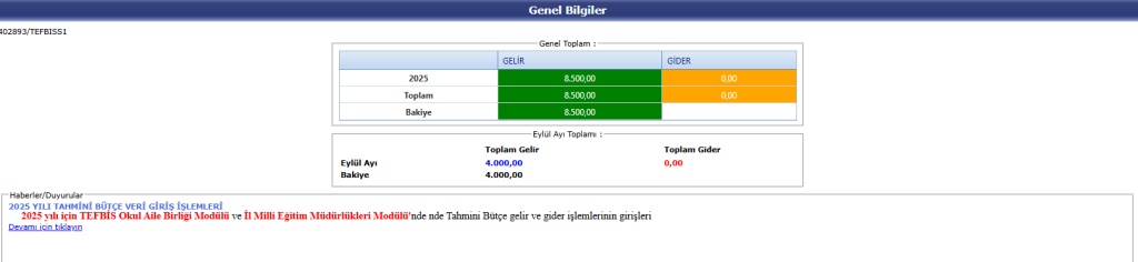 2025-2026 EĞİTİM ÖĞRETİM YILI OKUL AİLE BİRLİĞİ GELİR GİDER...